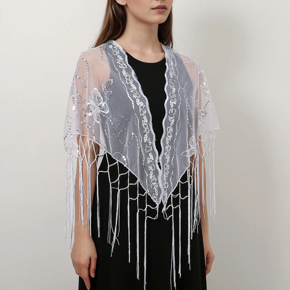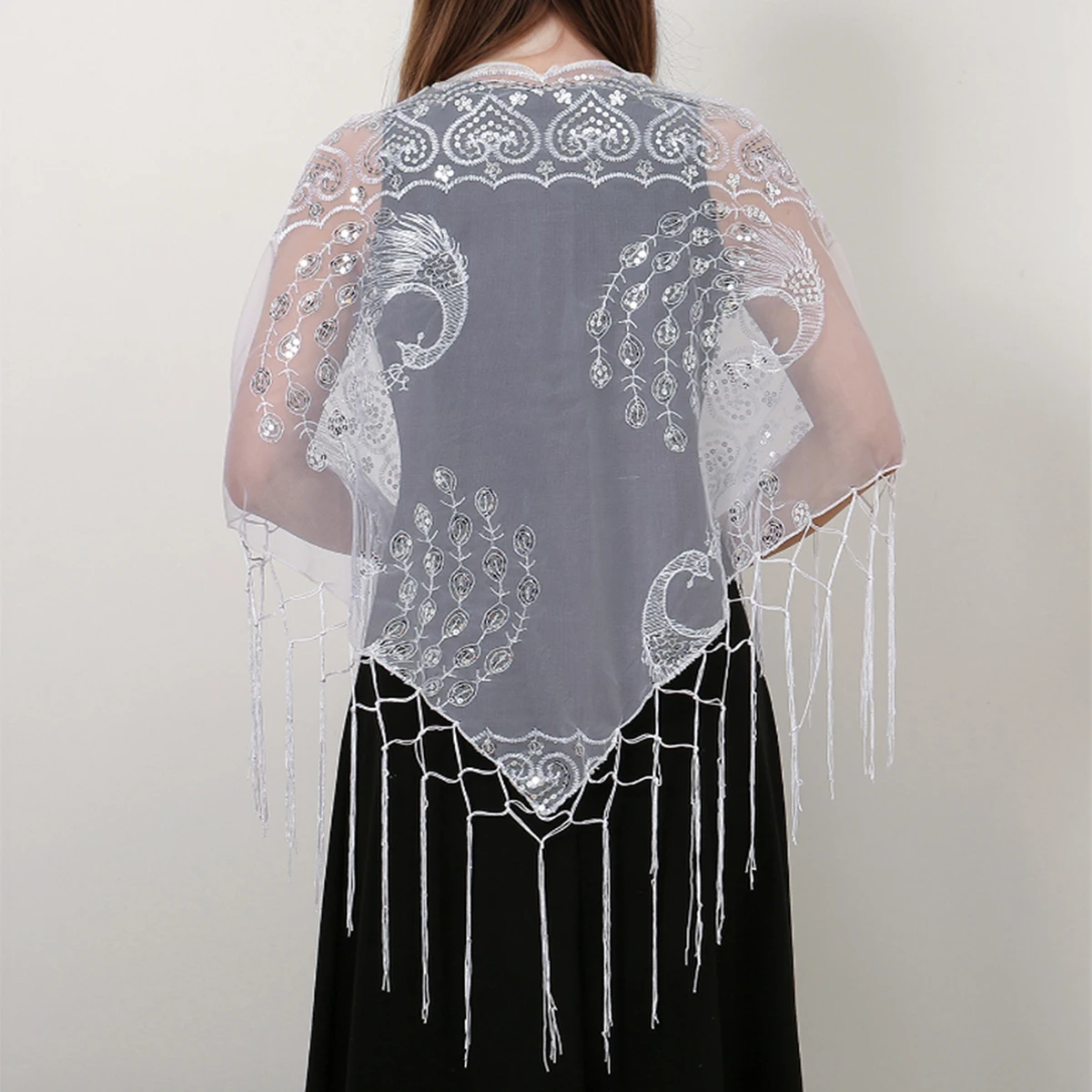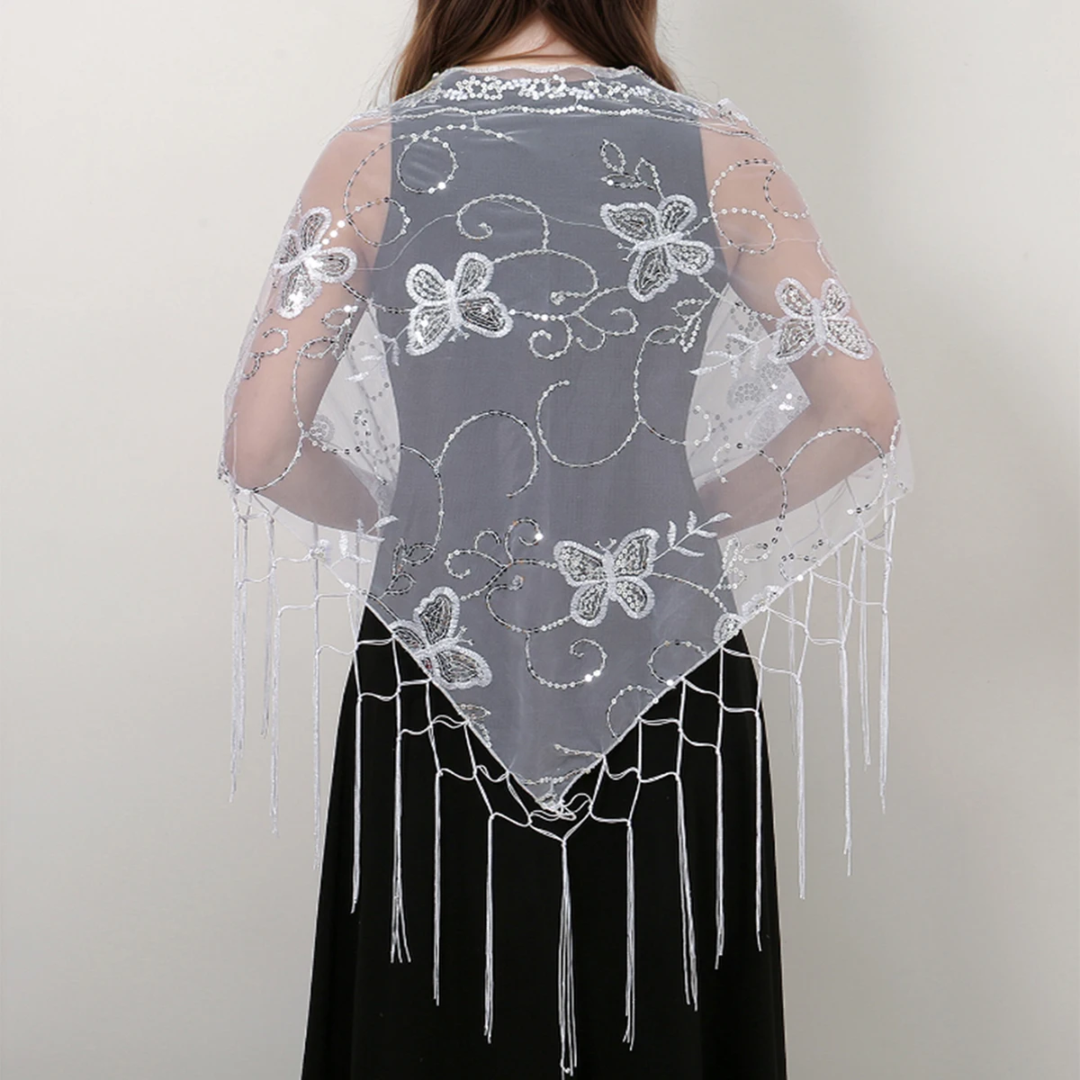 Pure Color Lace Triangle Scarf Women Evening Dresses Shawl Hollow Mesh Bridal Bridesmaid Wedding Party Shawl Lady Capes Wraps